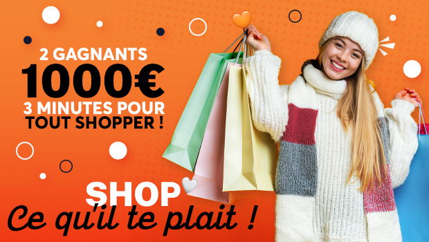 À Gagner : 2 000€ de shopping. 2 Gagnants auront chacun 3 minutes pour dépenser 1 000€ où ils le souhaitent !*